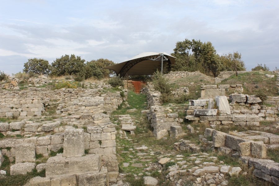 트로이의 성지(城址)는 무성한 잡초로 덮여있습니다. 듬성듬성 선 올리브나무, 무화과나무 사이사이에 빨간 개양귀비꽃과 자줏빛 아네모네꽃들이 피어있습니다. 발굴된 유적은 기원 전 3200년부터 기원 후 500년까지 트로이가 한자리에서 9번 일어섰다 망한 역사를 층(層)마다 다른 석질(石質)의 성벽(城壁)으로 말해 주고 있습니다.