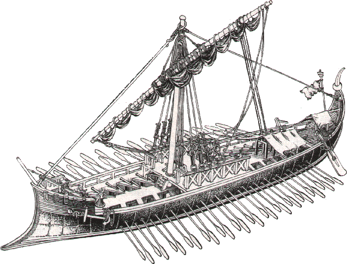 고대에서 중세에 걸쳐 지중해의 지배자였던 범선의 한 종류이다. 그리스와 로마에서 주로 사용했다. 노를 주로 쓰고 돛을 보조로 썼다.