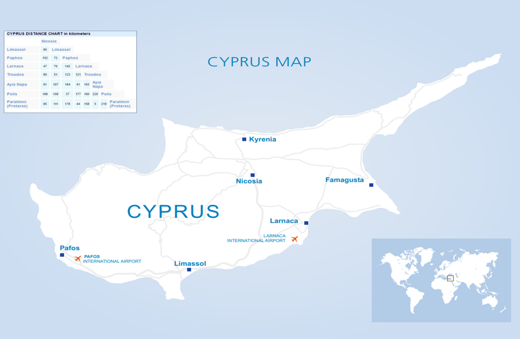 키프로스는 지중해에서 세 번째로 큰 섬으로 과거 영국의 식민지였으며, 1960년에 독립했다.