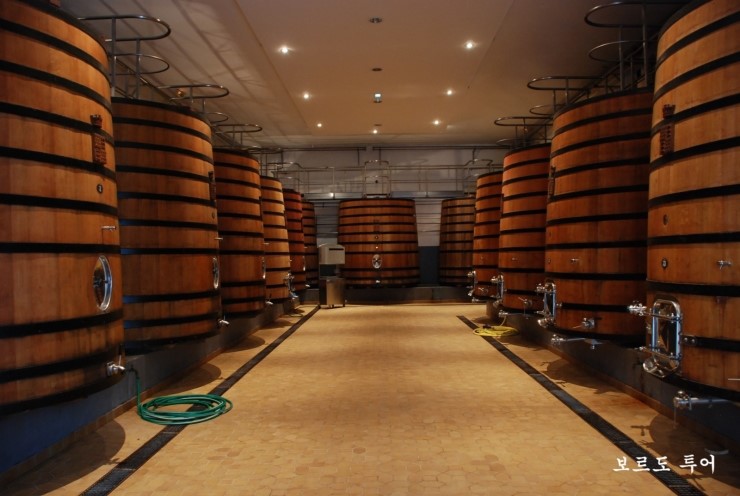 먼저 숙성실로 안내를 합니다. 어둡고 온도가 낮은 이곳에는 낯익은 오크통들이 반갑게 맞이하고 있습니다. 독일의 검은 숲에서 자라는 최상급 나무를 잘라 프랑스 장인들이 만든 오크통을 세계 최고로 손꼽는다고 합니다. 오크는 와인을 숙성하게 하고 맛과 향을 돋우는 데 매우 중요한 역할을 합니다.