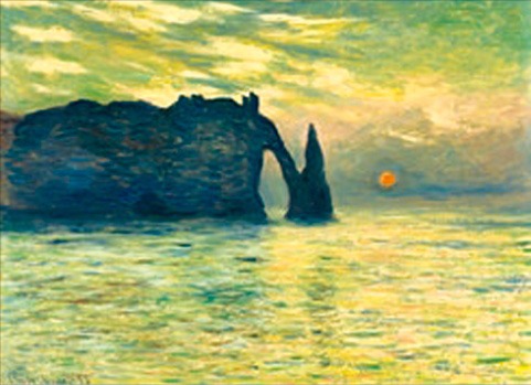 그는 이젤을 들고 절벽으로 올라가 매서운 겨울바람과 짙은 안개에 때맞춰 변하는 조수와 싸우면서 대기와 빛의 변화를 스케치했습니다. 그의 걸작인 <절벽, 에트르타, 석양>은 이런 노고 끝에 탄생했습니다.
