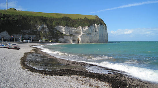 보코트를 지나면 에트르타입니다. 에트르타는 양쪽 만두(灣頭) 끝에 선, 아몽과 아발의 두 절벽이 절경으로 유명합니다. 모파상이 소설에서 "물 속에 코를 처박고 있는 거상(巨象)의 모습을 한 바위"라고 한 단애입니다. 쿠르베, 모네 등의 화가들이 그림으로 명작을 남긴 단애이기도 합니다.