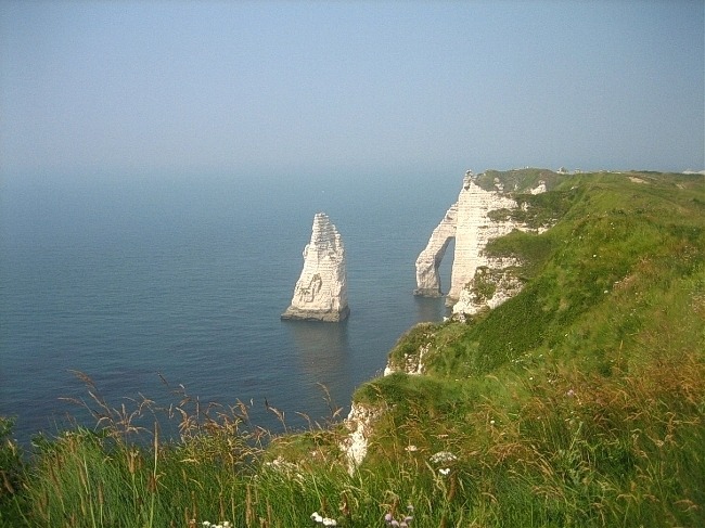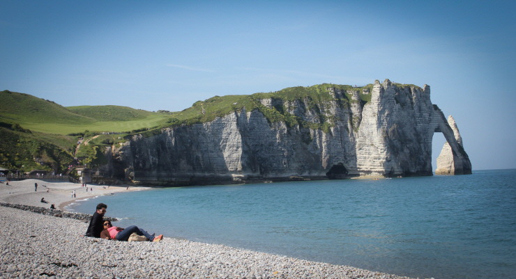 노르망디의 에트르타 절벽은 대서양 연안의 도시인 르 아브르와 디에프 사이에 있는 영국해협에 갑자기 쑥 올라와 커다란 벽처럼 우뚝 서 있습니다.