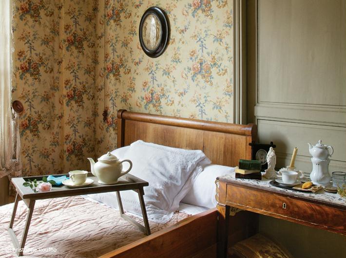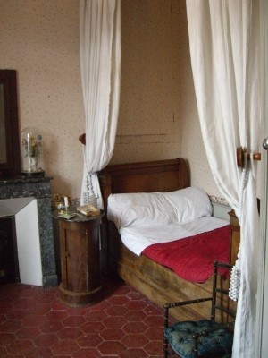 프루스트가 침실로 쓰던 2층 정원쪽 갓방에는 침대 머리에 소설에 등장하는 등불과 조르지 상드의 작품 <프랑스와 르 샹피>가 놓여 있습니다. 어머니가 올라와 잠 못 자는 프루스트에게 읽어 주던 책입니다.