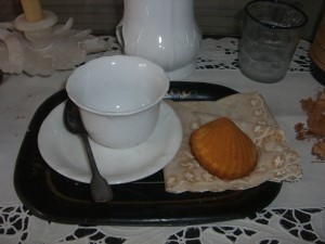복도 건너 한길 쪽이 레오니 고모의 방. 탁자 위에 보리수 찻잔과 나란히 과자가 한 봉지. 마들렌 과자입니다. 쿠키의 일종인 이 마들렌 과자야말로 프루스트의 의식의 세계를 터뜨린 뇌관이었습니다. 일요일 아침 레오니 고모의 방에 아침 인사를 가면 홍차나 보리수차에 담가주던 마들렌.