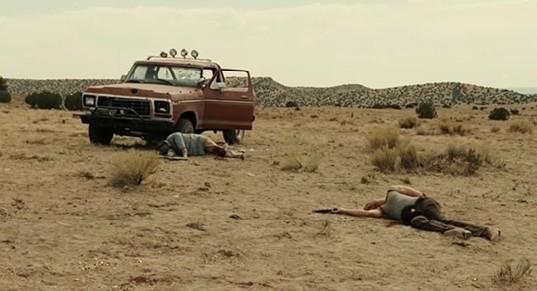 그는 결국 늦은 밤, 물을 챙겨 아까 낮의 그 곳으로 다시 갑니다. 하지만 한 트럭의 마약도, 숨이 붙어있던 그자의 목숨도 이미 사라지고 난 뒤입니다. 그리고 마약거래를 하던 조직에서는 청부살인업자 안톤 시거를 고용합니다. 그는 이제부터 킬러에게 하염없이 쫓길 것입니다.