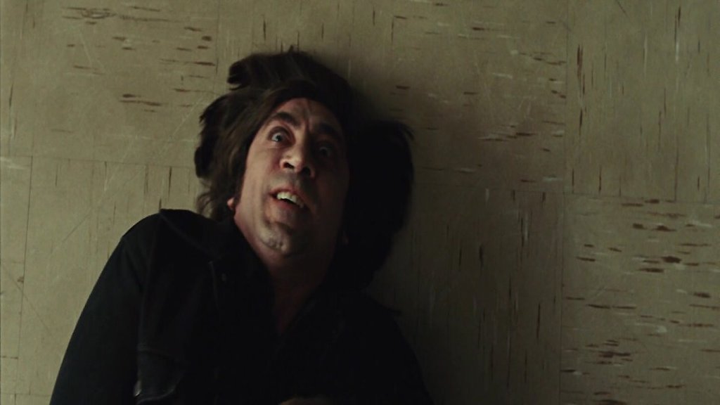 이런 모습은 주유소 주인과 비논리적 대화를 나누는 여유 넘치는 표정으로 동전을 던지는 모습과, 모스를 찾기 위해 찾아간 모텔 관리인 여성과 논쟁한 이 후, 상대를 죽일 수 없는 상황에서 화도 나고 조금은 당황한 쉬거의 표정에서 잘 일을 수 있습니다. 그는 마치 인간이 아닌 죽음을 형상화 한 모습과 같습니다.