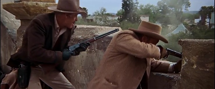 * 파이크 일당과 총격전을 벌이는 손튼(왼편, 로버트 라이언 분)