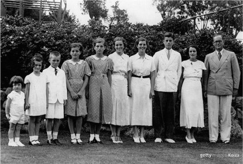 * 케네디 일가...오른쪽이 아버지, 오른쪽 다섯번째가 어머니