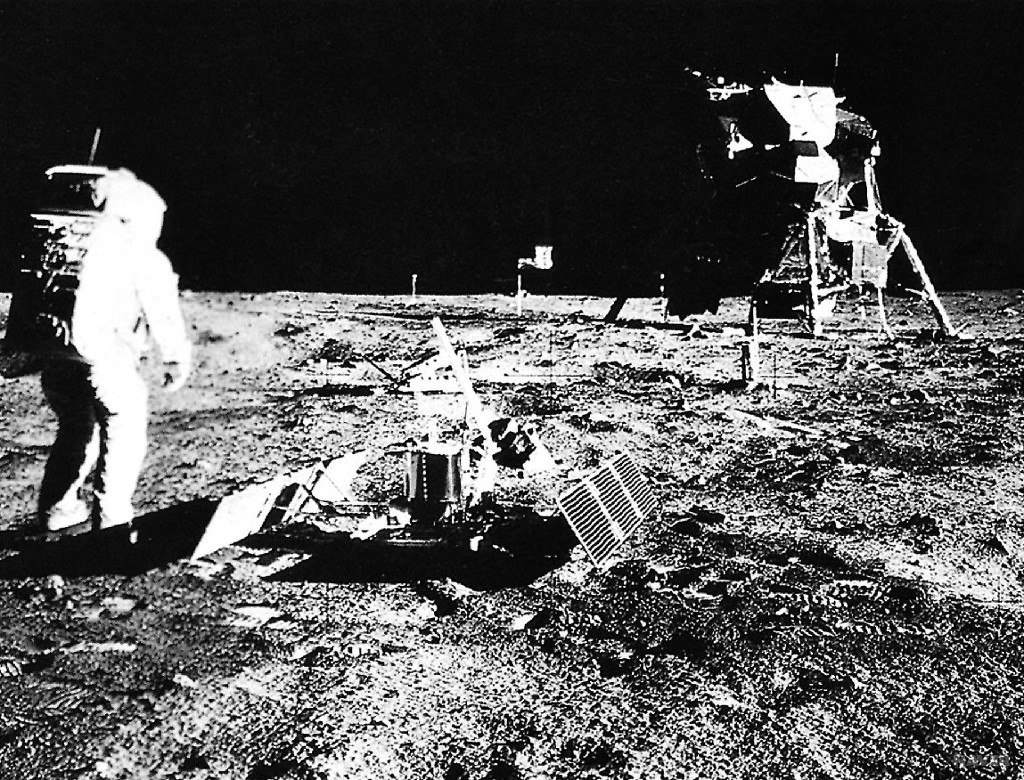 아폴로 11호는 아폴로 10호가 달에 갔다 온 지 불과 1개월이 지난 1969년 7월 16일에 지구를 떠나 20일에 드디어 닐 암스트롱Neil Armstrong, 올드린Aldrin 및 콜린스Collins 3인이 달에 도착하였다. 암스트롱과 올드린은 달의 고요의 바다에 착륙하는 데 성공하였습니다. 콜린스는 사령선을 타고 달을 주회하면서 대기궤도(待期軌道)상에서 달 표면 사진을 찍는 일을 맡았습니다.