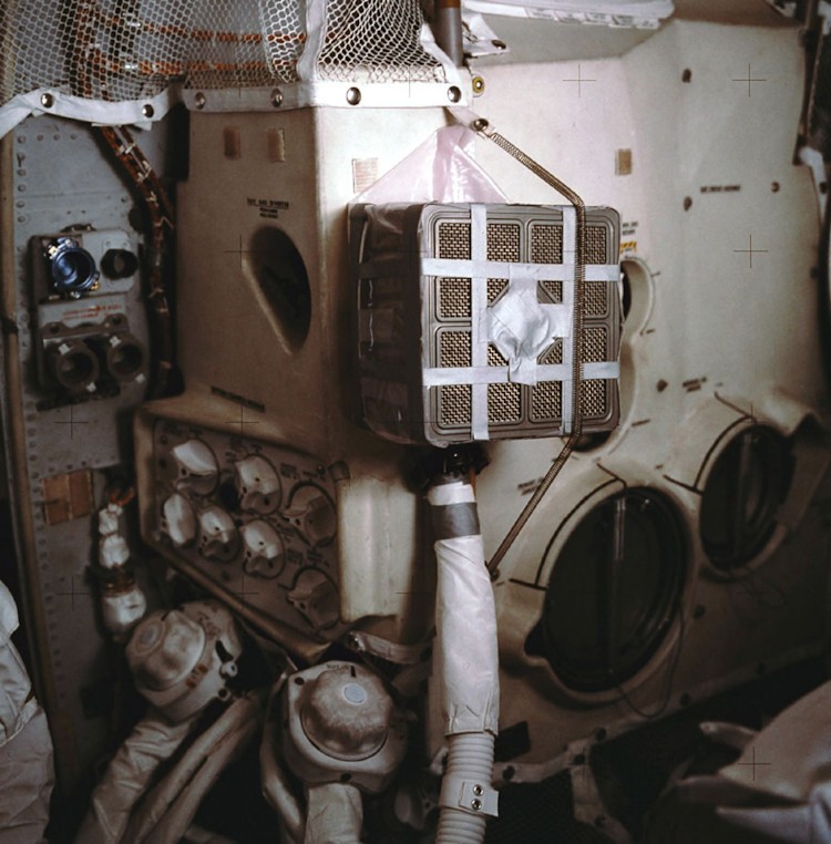 또 다른 문제는 이산화탄소의 방출이었습니다. 사람이 숨을 쉬면 이산화탄소가 나오는데 이산화탄소의 양이 많아지면 숨을 쉬기 곤란해집니다. 사령선에는 이산화탄소를 제거해주는 필터가 있었는데 정작 이 필터가 사령선과 착륙선의 규격이 달랐습니다.