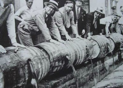 금주령 기간 동안 주류 불법유통으로 적발된 케이스가 90만 건에 달했고 이런 불법유통에 관여한 것은 정치인들과 범죄조직이었습니다. 그들에게는 자금을 확보하는 황금알을 낳는 거위가 되어버려 이 시기를 맞아 이탈리안 범죄조직은 급속히 성장하게 됩니다. <오른편 : 술을 부어 버리는 단속반들>