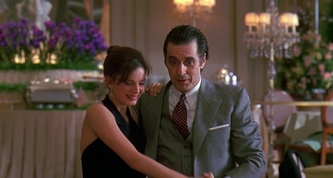 영화의 삽입곡 ‘Por Una Cabeza’가 이 영화로 인해 탱고 하면 떠오르는 음악으로 유명해졌습니다. 이 씬에서 영국출신 여배우 개브리엘 앤워와 알 파치노의 혼을 실은 연기가 일품입니다. 영화상의 그의 맹인 연기는 압권입니다. 대부분 장면에서 장황한 대사 처리와 감정에도 불구하고 눈 하나 깜빡하지 않고 초점 없이 화자를 바라보는 모습은 실제 그가 맹인이 아닐까 할 정도의 착각을 불러일으킵니다.