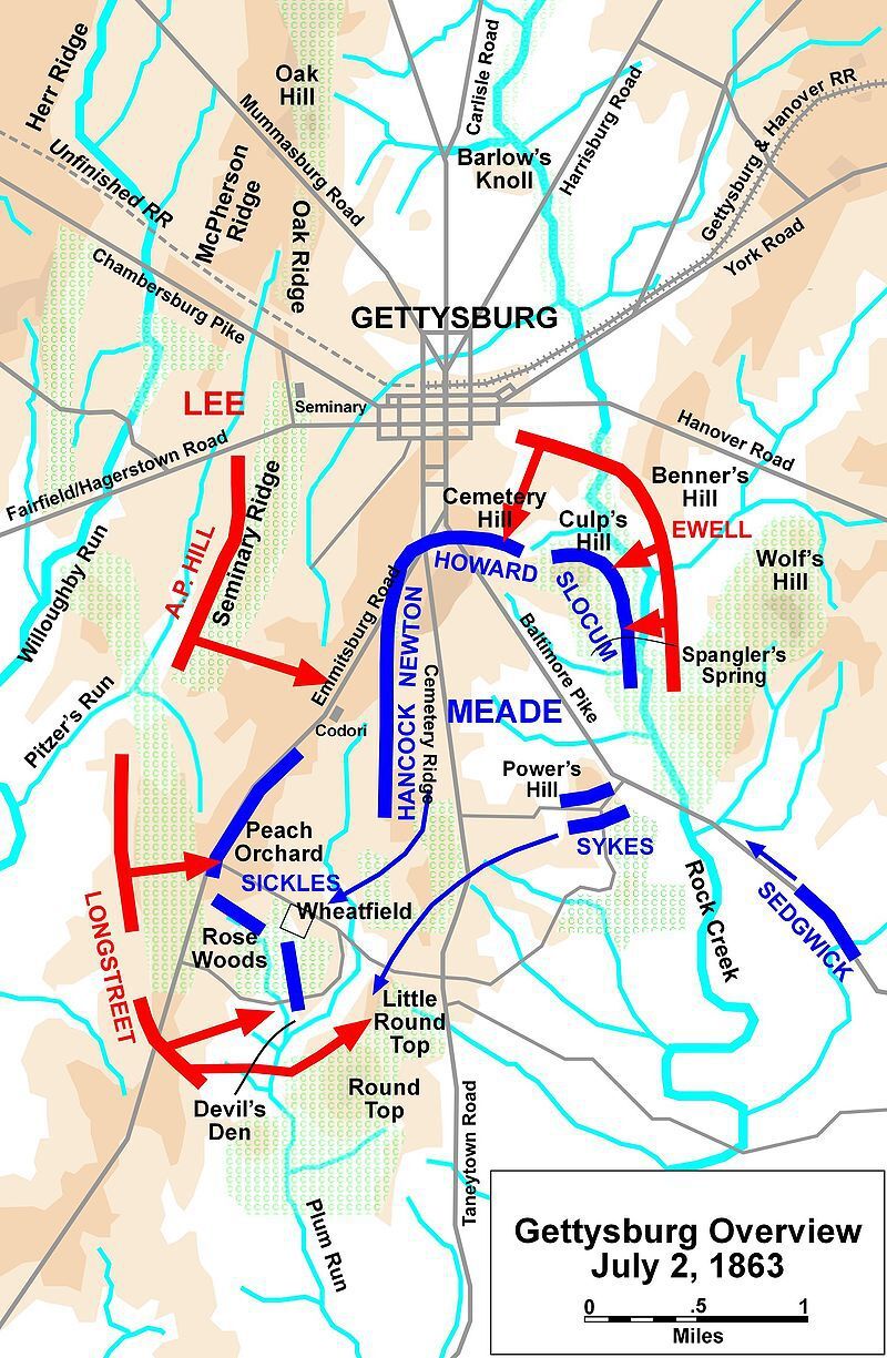리 장군의 남군은 첫 날(7월 1일)에는 북군의 우익을 때려 보았고, 둘째 날(7월 2일)에는 북군의 좌익을 때려 보았지만 결정적인 승기를 잡을 수 가 없었습니다.