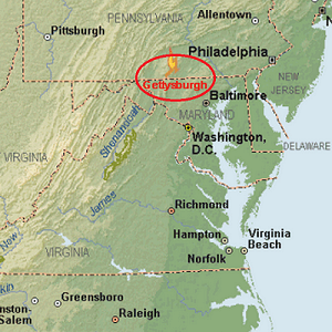 즉 그때까지 일방적으로 밀고 내려오는 북군을 버지니아에서 맞아 싸우기만 했지만 이번에는 병력을 이끌고 북부로 깊숙히 쳐들어가서 북군과 일대 자웅을 결해보겠다는 것이었습니다.(사진:게티스버그 위치도)