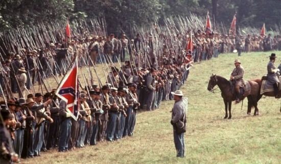 이 작품은 미국 남북전쟁의 분수령이자 가장 유명한 게티스버그 전투 사흘간을 그린 영화입니다. 원작은 풀리쳐 상에 빛나는 마이클 사라의 입니다. 지금은 게티즈버그 국립 군사 공원으로 바뀌었지만, 당시 그곳에서 벌어졌던 피 튀기는 전투 장면 촬영에는 5천 명의 엑스트라들이 동원되었습니다.