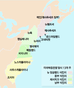 처음 아메리카 식민지로 이주한 영국인들은 1607년, 제임스 1세에게 허가를 받은 100여 명의 사람들이었습니다. 이들은 처음에 도착한 지역에 '제임스 타운'을 건설했습니다. 1620년에는 102명의 청교도들이 제임스 1세의 청교도 박해를 피해 새로운 식민지를 건설합니다. 그리고 이들은 지금의 미국 매사추세츠 주에 '플리머스' 식민지를 건설했습니다.이후 영국은 북아메리카의 대서양 연안에 모두 13개의 식민지를 건설했습니다.