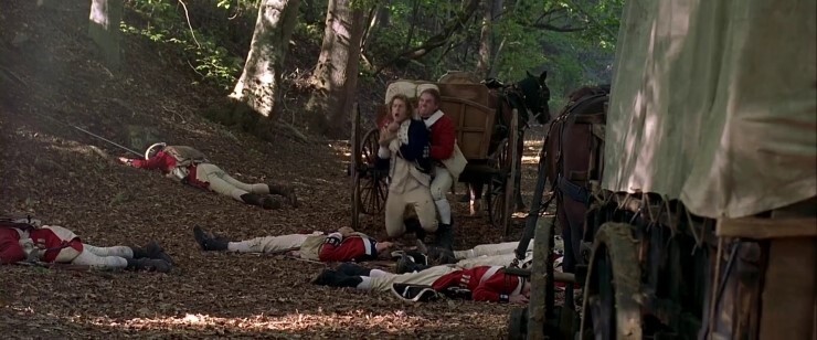 거꾸로 실제 인물 프랜시스 마리온(주인공 벤자민)은 아주 고약하고 잔인했다고 하는데 영화에서는 독립전쟁의 영웅 벤자민 마틴으로 지나치게 미화하였다는 구설수에 오르기도 했습니다.(사진:태빙턴을 아작내는 마리온)