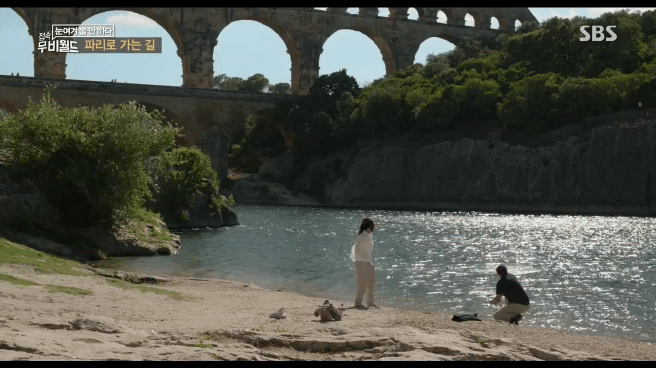 있는 뤼미에르 박물관 외에도 직물박물관, 리옹에서 가장 큰 시장인 ‘폴 보퀴즈 시장’ 등이 등장, 도시의 세련됨과 여유로움이 조화를 이루며 자연과는 또 다른 분위기를 자랑합니다.(사진, 수도교에서의 두 사람)