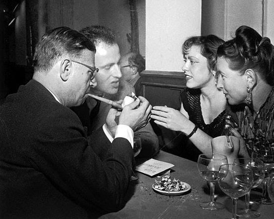 ‘자주 함께 온 여성’이란 물론 사르트르와 생애의 동반자가 되는 <제2의 성>의 저자 보부아르입니다. 이들은 서로 자유로운 주체로서 어디까지나 상대에 대해 타자(他者)로서의 여자와 남자의 관계, 자유와 자유의 우애(友愛)의 관계여야 한다는 <제2의 성>의 주장을 바로 그대로 실천한 보부아르와 사르트르. 이 계약부부는 플로르 근처에 있는 각기 다른 자신의 아파트를 대체로 같은 시간에 나와 따로따로 플로르에 모습을 나타냈습니다.
