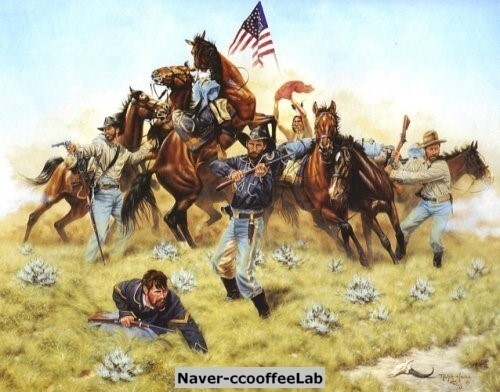 연방군은 시팅불이 이끄는 수우족을 이번 기회에 단단히 토벌할 목적으로 리틀빅혼 강과 로즈버트 강이 만나는 지점에 진지를 구축했습니다. 그리고 사령관 테리 장군은 조지 암스트롱 커스터 중령을 대장으로 하는 제7기병연대에 수우족 공격 명령을 내렸습니다. 웨스트포인트 출신인 커스터는 남북전쟁 때 20대의 나이로 혁혁한 전공을 세워 소장계급까지 올랐던 인물이었습니다. 전쟁이 끝나고 원래 계급인 중령으로 돌아왔는데 이와 같이 전쟁 전 계급으로 돌아오는 것은 당시에는 일반적인 현상이기도 했습니다.