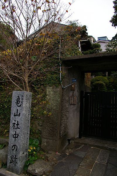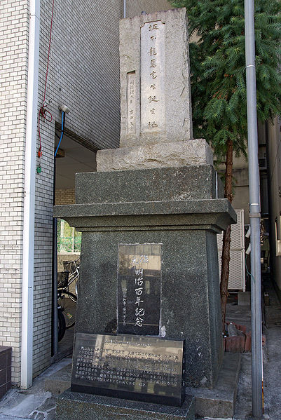 가메야마 조합가메야마 조합▶ 이후 가쓰가 물러나고 훈련소가 문을 닫자, 료마는 사쓰마 번의 원조를 받고 가메야마 조합(龜山社中)이라는 무역회사를 세웠다. 이 조합은 상업활동 등에 종사하는 현대의 기업과 유사한 성격을 가진 회사였다.[35] 가메야마 조합은 당시 상인들이 모여있던 고조네 이시로(小曾根英四郞)의 집을 근거지로, 시모노세키의 이토 스케다유(伊藤助太夫)의 집과 교토의 식초가게에 사무실을 설치했다. 조슈 번은 1864년 12월에 다카스기 신사쿠(高杉晋作)가 군사를 일으켜 온건파의 정권을 장악해 다시 존왕양이파가 정권을 차지하고 있었다.(고잔지 거병(功山寺擧兵)) 가메야마 조합의 목적은 상업 활동의 이익으로 이윤을 얻는 것 이외에, 당시 물과 불처럼 사이가 나빴던 사쓰마와 조슈 양 번의 화해 도모도 포함되어 있었고, 이는 후에 삿초 동맹(薩長同盟)의 성립에 기여하게 된다. 막부 세력으로부터 한 차례 타격을 받은 조슈 번은 그들을 교토 정치로부터 몰아낸 중심 세력에 있던 사쓰마 번과 아이즈 번에 뿌리깊은 반감을 갖게 되었고, 일부 번사(藩士)들은 이들과는 하늘아래 함께 살 수 없다고 맹세하며 '살적회간'(薩賊會奸) ('사쓰마는 적이고 회통하는 자는 간사한 자이다') 라는 네 글자를 나막신 바닥에 써놓고 짓밟으며 울분을 토할 정도였다. 이러한 분위기 속에서도 도사 번의 탈번 지사 나카오카 신타로(中岡愼太郞)와 그의 동지 히지가타 히사모토(土方久元)는 사쓰마와 조슈 같은 세력이 강대한 번의 동맹을 촉구해, 이를 통해 무력 막부의 토벌을 바라고 있었다.