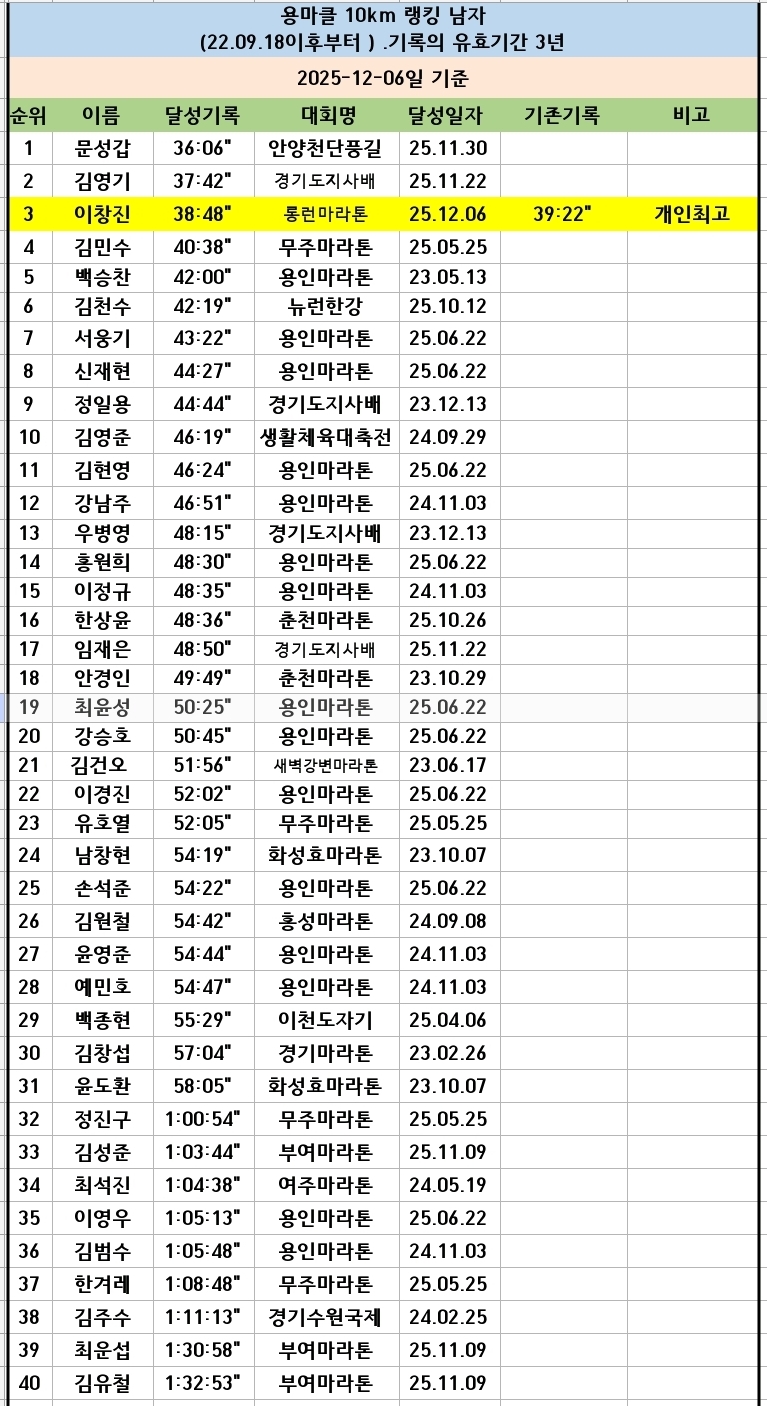 6일 토요일 롱런마라톤 10k에 참가하신 이창진 회원님께서 개인최고기록으로 완주하셨습니다.