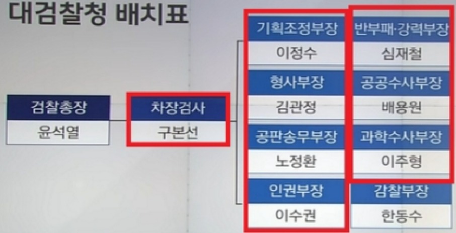 정권을 겨냥한 주요 수사를 일선에서 지휘해왔던 차장검사들이 모두 교체되면서 검찰 내부에서는 '고위급 간부 인사에 이어 정권 수사를 뭉개겠다는 의도를 또 다시 보인 것이 아니냐'는 목소리가 나오고 있다.