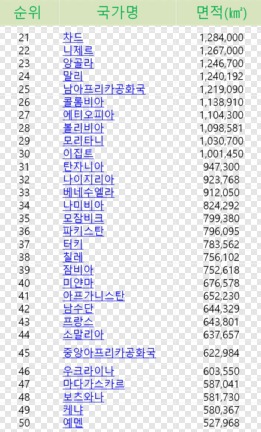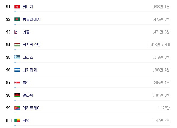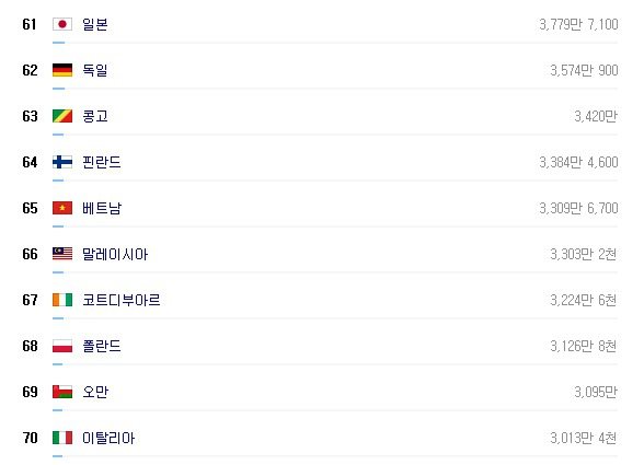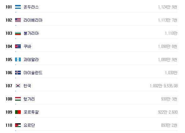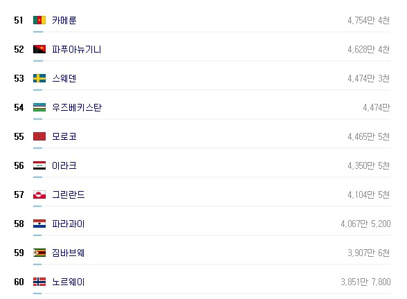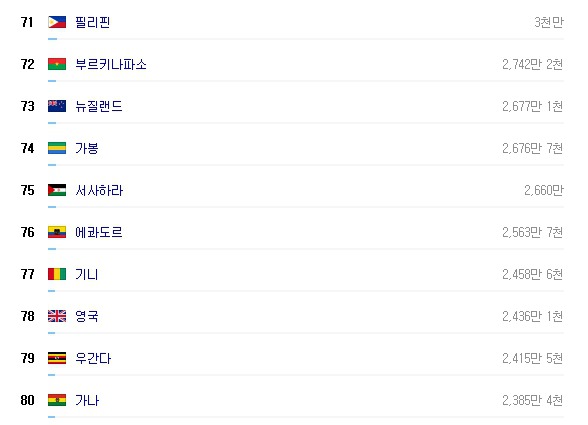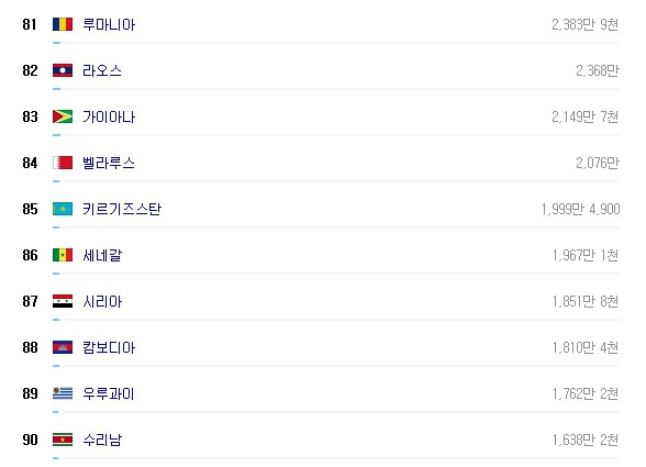 세계의 인구수( 2019년 통계청 KOSIS 기준)