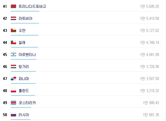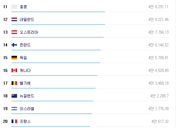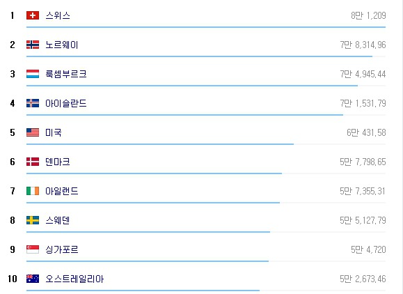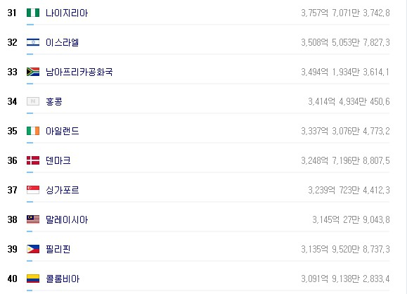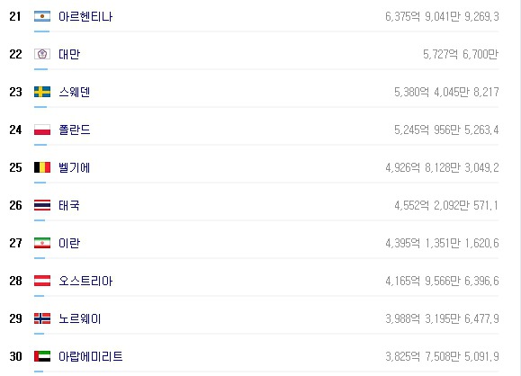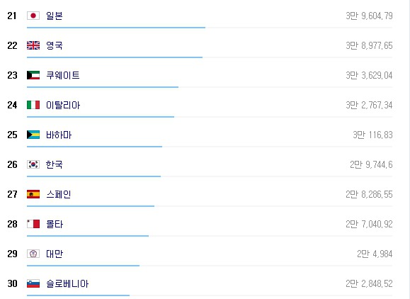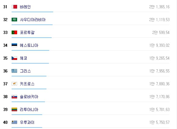 한국 1인당국민총소득(당해년가격) 2만 9,744.6달러 (26위)'17, 통계청 KOSIS 기준