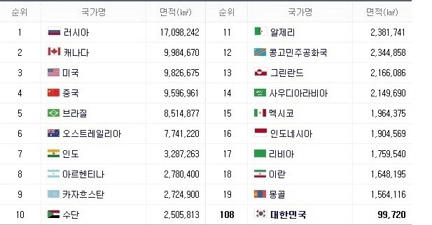 국토내의 수면을 포함한 국토의 총면적 참고사항 ㆍ 1,000ha = 10km²