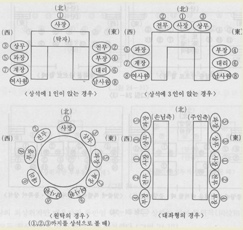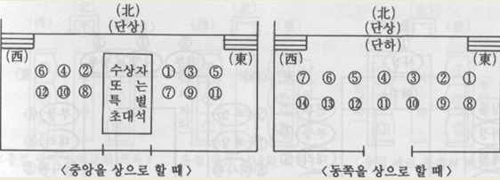 위계에 맞는 좌석의 배치와 석차는 의식행사에서 뿐 아니라 일상생활에서도 엄격히 지켜져야 한다.