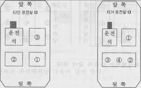 버스 등의 좌석은 차가 가는 방향을 향하는 창쪽을 상석으로 한다. 자동차의 좌석 석차는 편리와 창밖의 경치 구경의 편리를 위주로 해서 정한다.