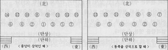 그러나 상하석(上下席)을 정해 위치한다는 것은 죽은 자의 경우도 있으므로 그 기준도 있어야 함은 당연하다.