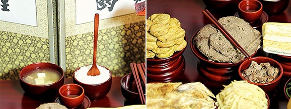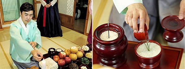 국그릇을 물로 바꾸고 밥을 세 숟갈 떠 넣고 국궁을 한다(숭늉마시는 조상앞에서 예의) |