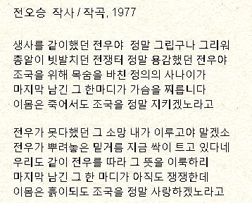 전오승(全吾承 1923~2018 평안남도 진남포) 작사/작곡 1977
