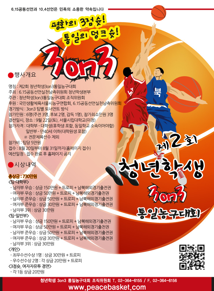 올해는 청년부를 신설해서 <제2회 청년학생3on3통일농구대회>로 명칭을 바꿔서 진행합니다.