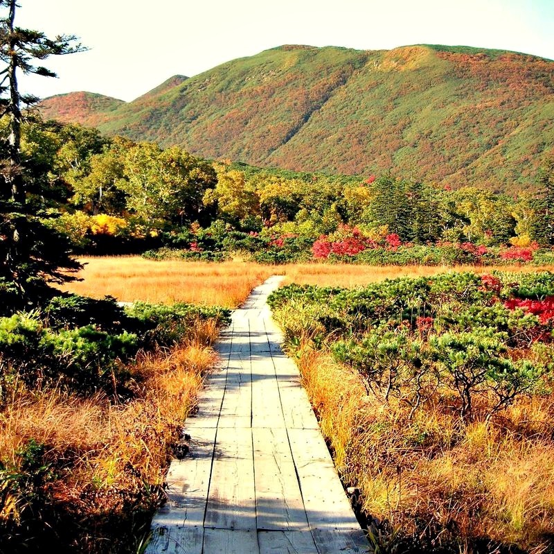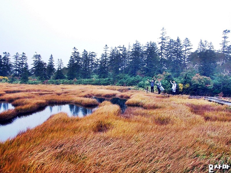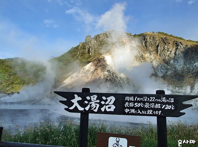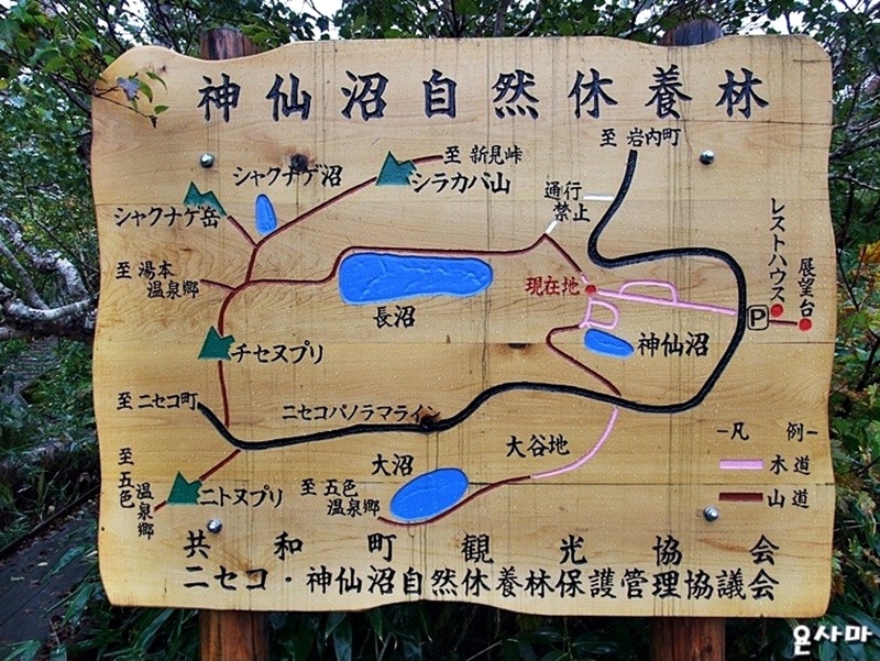 이와오누푸리 유황산과 오누마(大沼) 호수 그리고 조릿대가 군락을 이룬 오야치(大谷地)를 지나야 합니다.
