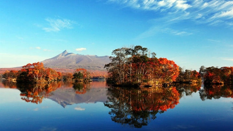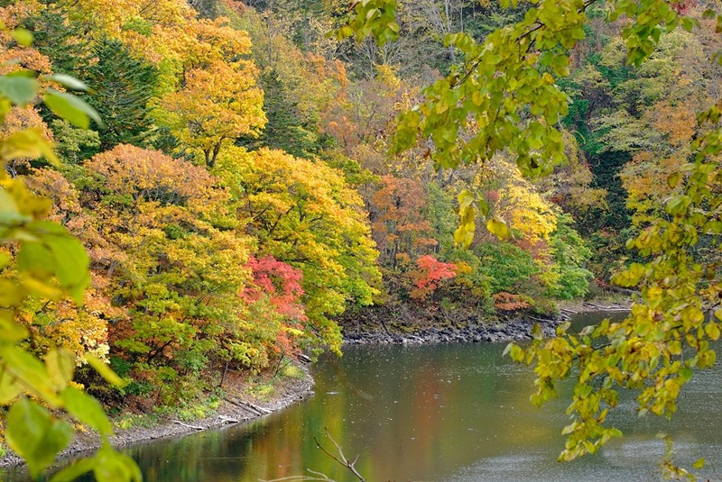 산허리를 가득 메운 커다란 오누마(大沼) 호수의 단풍