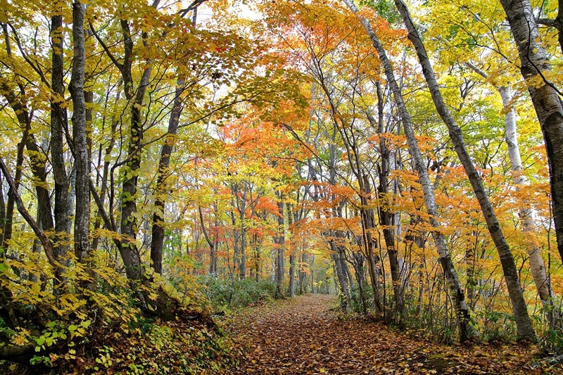 요테이산 한케츠코 단풍 숲과 유황온천가 노보리베츠 지옥계곡의 색다른 산책도 즐깁니다.