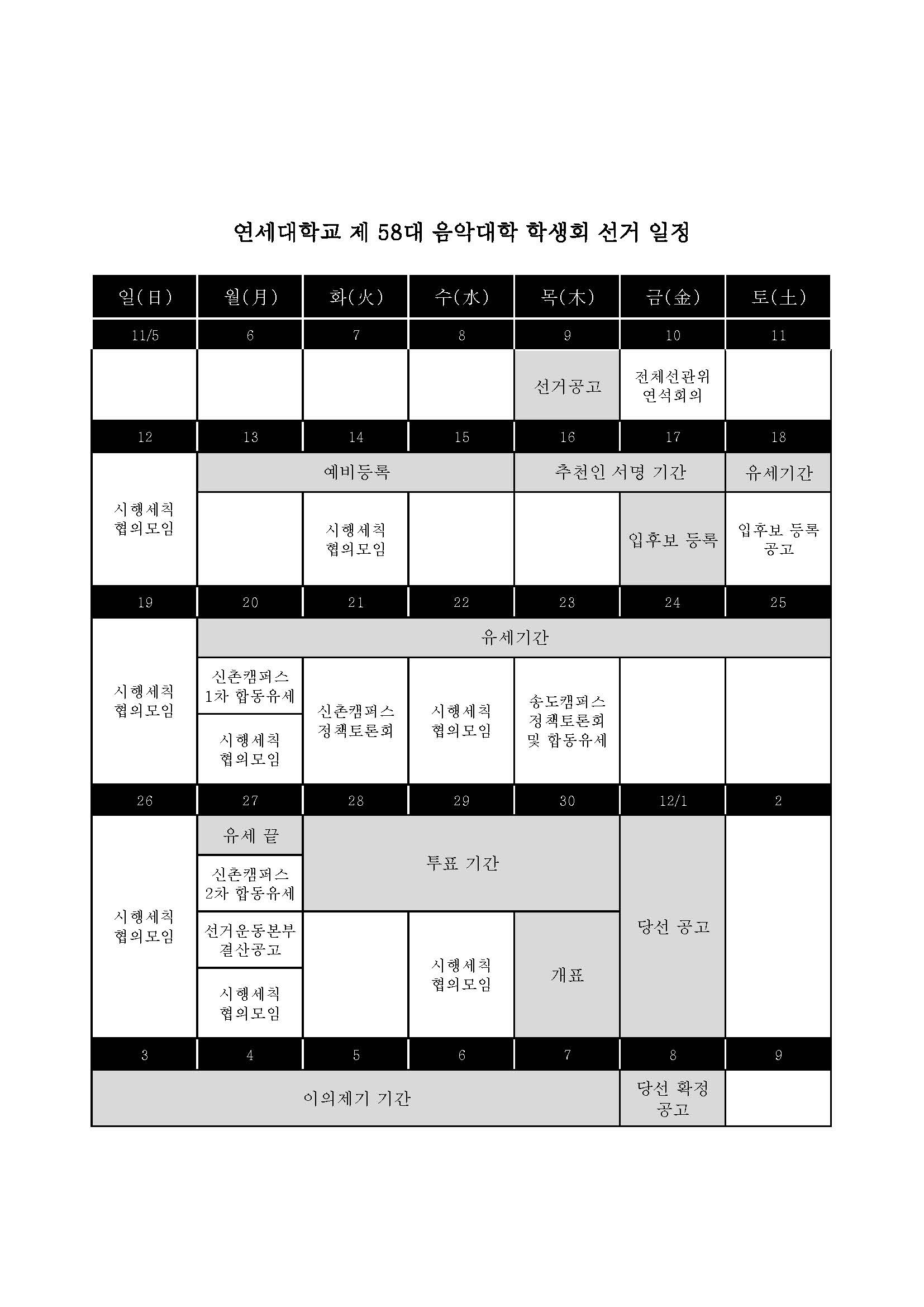 Re: 1. 단위별 선거 일정 및 선거시행세칙 수합 (마감일 11/12 일)_음악대학 작성자음선관위장 선현오|작성시간23.11.13|조회수71 목록 댓글 0 글자크기 작게가 글자크기 크게가 음악대학 선거일정음악대학 선거세칙2021년 (개정안).hwp53.00KB및 선거시행세칙입니다 첨부파일첨부된 파일이 2개 있습니다. jpg 파일 선거일정.jpg 다운로드 hwp 파일 음악대학 선거세칙2021년 (개정안).hwp 다운로드 다음검색 현재 게시글 추가 기능 열기 북마크 공유하기 신고 센터로 신고 댓글 댓글 0 댓글쓰기 답글쓰기 댓글 리스트
