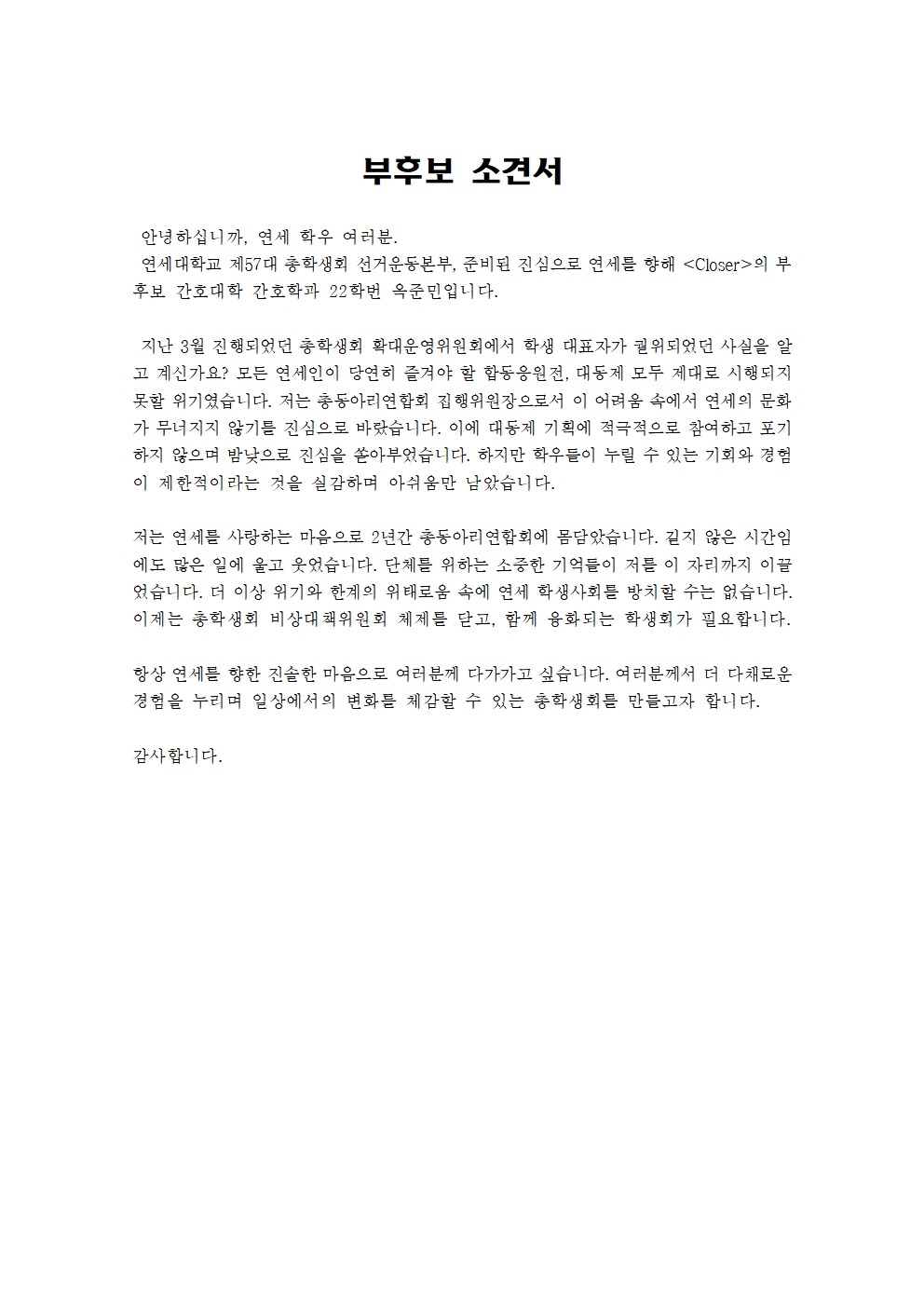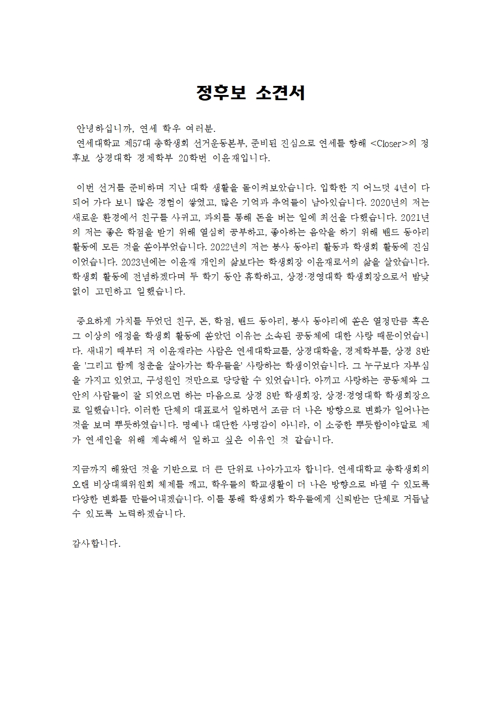 정후보, 부후보 소견서 작성자중선관위원장 이소현|작성시간23.11.18|조회수138 목록 댓글 0 글자크기 작게가 글자크기 크게가 다음검색 현재 게시글 추가 기능 열기 북마크 공유하기 신고 센터로 신고 댓글 댓글 0 댓글쓰기 답글쓰기 댓글 리스트
