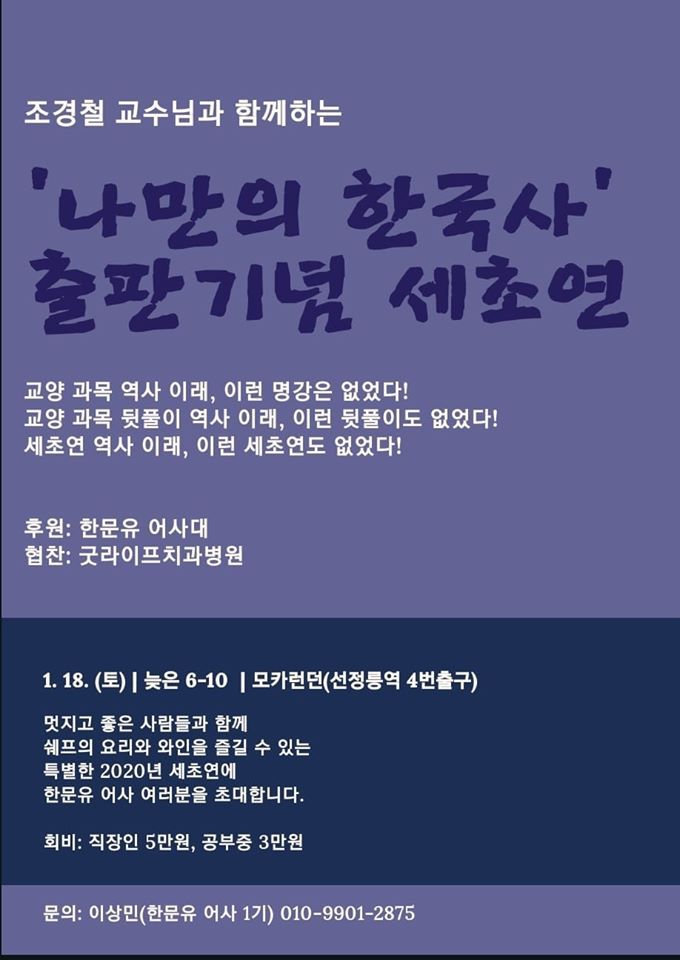 짧은 기간이지만 또 하나의 실록이겠지요. 실록을 사고에 보관하고 세초하고 열리는 세초연은 어제를 정리하고 미래를 다짐하는 자리이기도 합니다. 이번에 연세한국사 강의 내용을 정리한 "나만의 한국사" 출판기념회를 겸하게 되었는데요 저에게는 연세한국사의 실록과 같은 책이라 그런지 어느 때 보다 감회가 새롭습니다. 새로운 한문유, 새로운 연세한국사를 만들어가는 세초연이라 의미가 깊습니다.