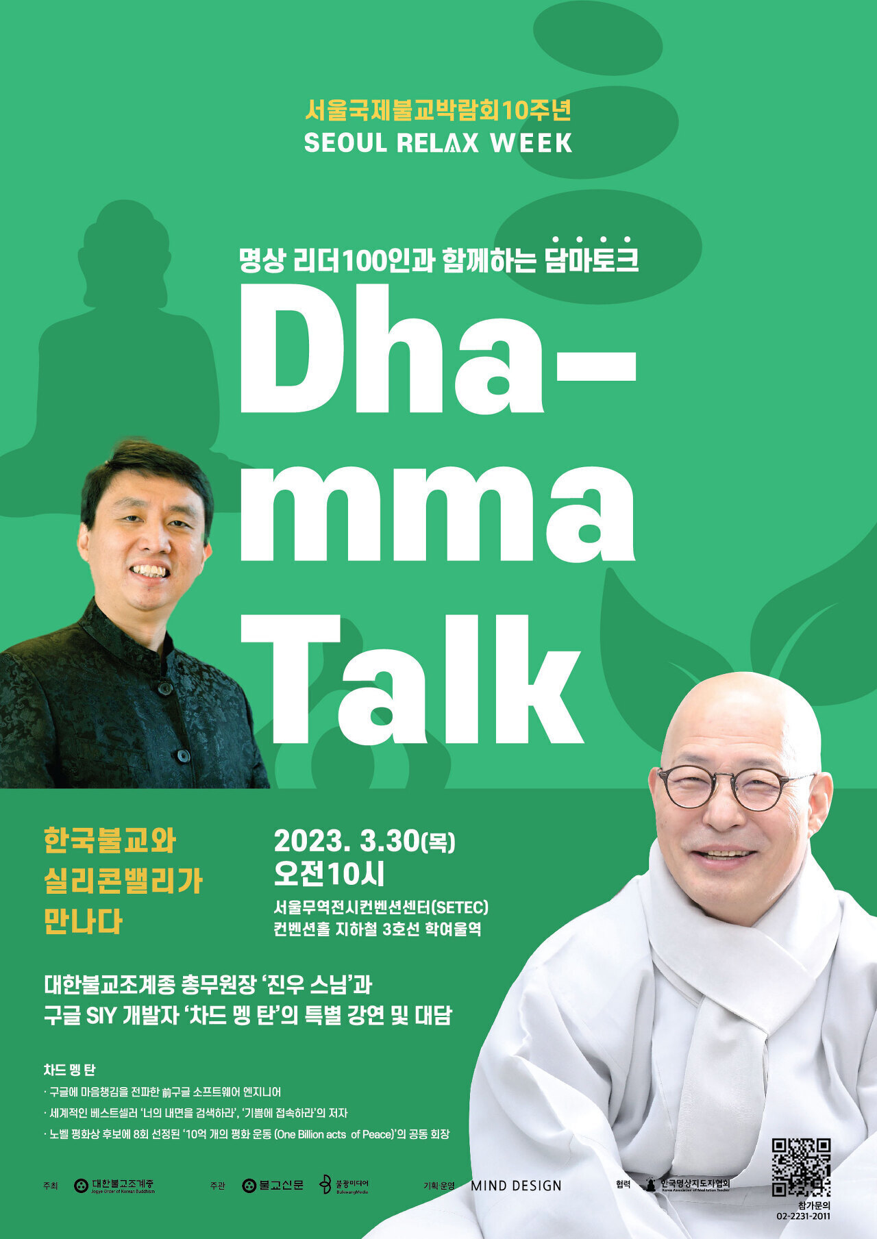 대한불교 조계종 총무원장 ‘진우 스님’과 구글 SIY 개발자 ‘차드 멩 탄’의 특별 강연 및 대담을 만나볼 수 있는 <담마토크>