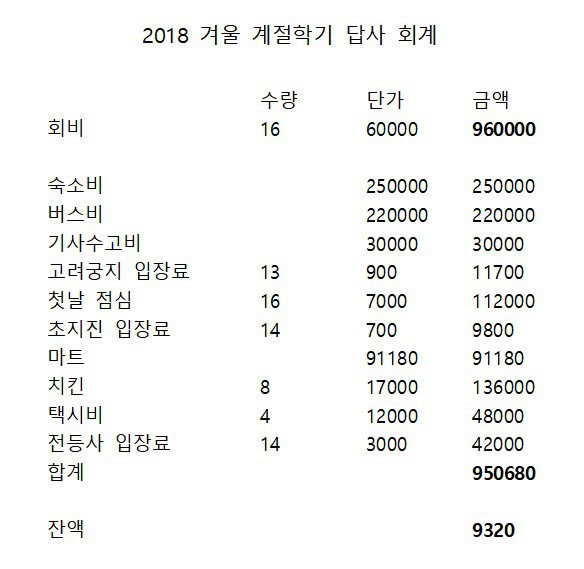 2018 겨울계절학기 답사 회계 작성자성지용|작성시간19.01.14|조회수107 목록 댓글 0 글자크기 작게가 글자크기 크게가 다음검색 현재 게시글 추가 기능 열기 북마크 공유하기 신고 센터로 신고 댓글 댓글 0 댓글쓰기 답글쓰기 댓글 리스트