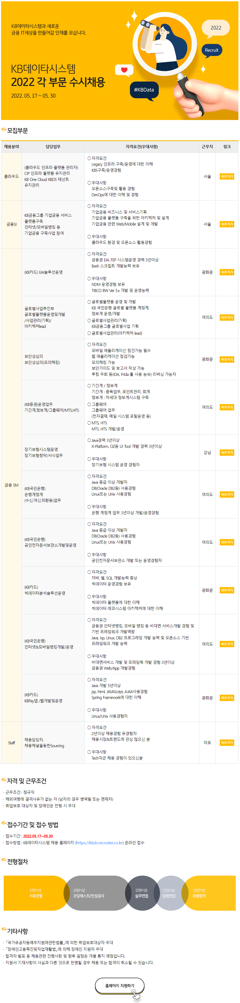 [KB데이타시스템] 2022 각 부문 수시채용 (~5.30)