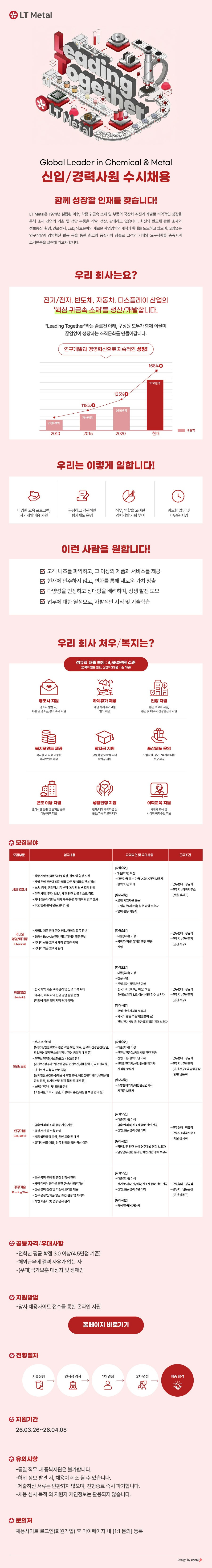 [엘티메탈] 신입/경력사원 수시채용(~04/08) 작성자캐치인사담당자|작성시간26.03.26|조회수4 목록 댓글 0 글자크기 작게가 글자크기 크게가 https://bit.ly/4uSaKTM대표사진 삭제AI 활용 설정사진 설명을 입력하세요. 다음검색 현재 게시글 추가 기능 열기 북마크 공유하기 신고 센터로 신고 댓글 댓글 0 댓글쓰기 답글쓰기 댓글 리스트