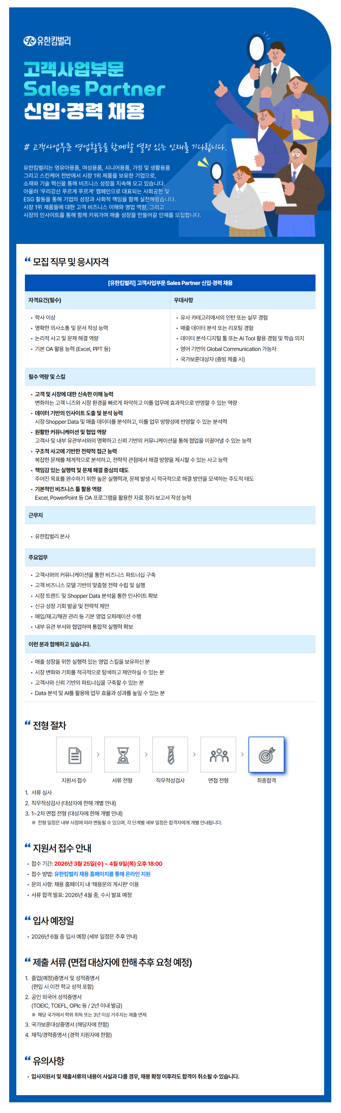 [유한킴벌리] 고객사업부문 영업 신입 및 경력 채용