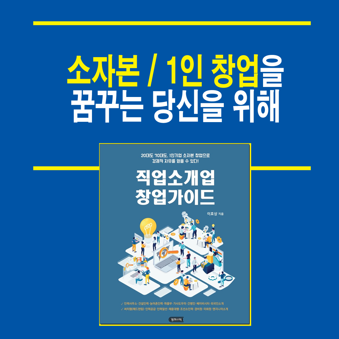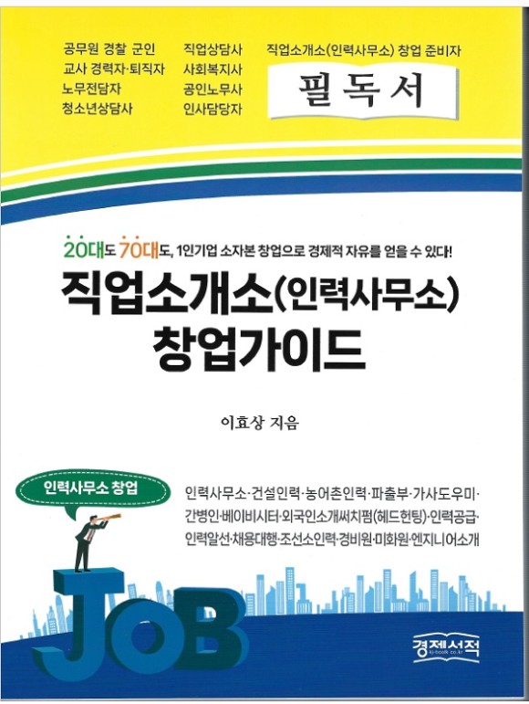 #직업소개업 #직업소개소 #직업소개 #직업소개소 창업 #직업소개사업 #인력소개 #인력소개업 #인력중개업 #인력사무소 #건설인력 #농어촌인력 #파출부 #가사도우미 #간병인 #베이비시터 #외국인소개 #외국인노동자 #인력 #일자리 #신간안내 #신간도서 #이효상 #인력공급 #써치펌 #헤드헌팅 #아웃소싱 #채용대행 #조선소인력 #경비원 #미화원 #창업가이드 #소자본창업 #리크루트센터 #백만인취업센터