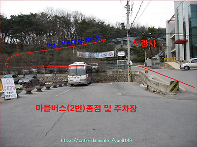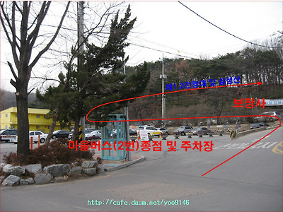 안양예술공원 주차장 및 마을버스 2번 종점에서 하차하여 아래 사진과 같이 보장사입구에서